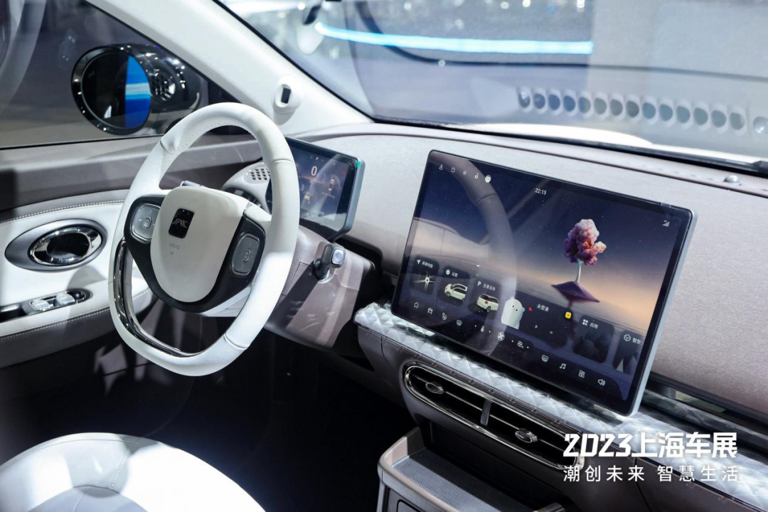 内饰整体布局以太空飞船座舱为灵感,两幅式的极简科技方向盘,以及搭载钇为OS的15.6英寸的中控大屏;大量运用泡泡元素和撞色、拼色设计,并通过环抱式座舱向用户传递可感知的情感和温度。